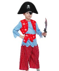 Состав костюма: Тельняшка с жилетом, бриджи, пояс, шляпа, повязка на глаз, сабля