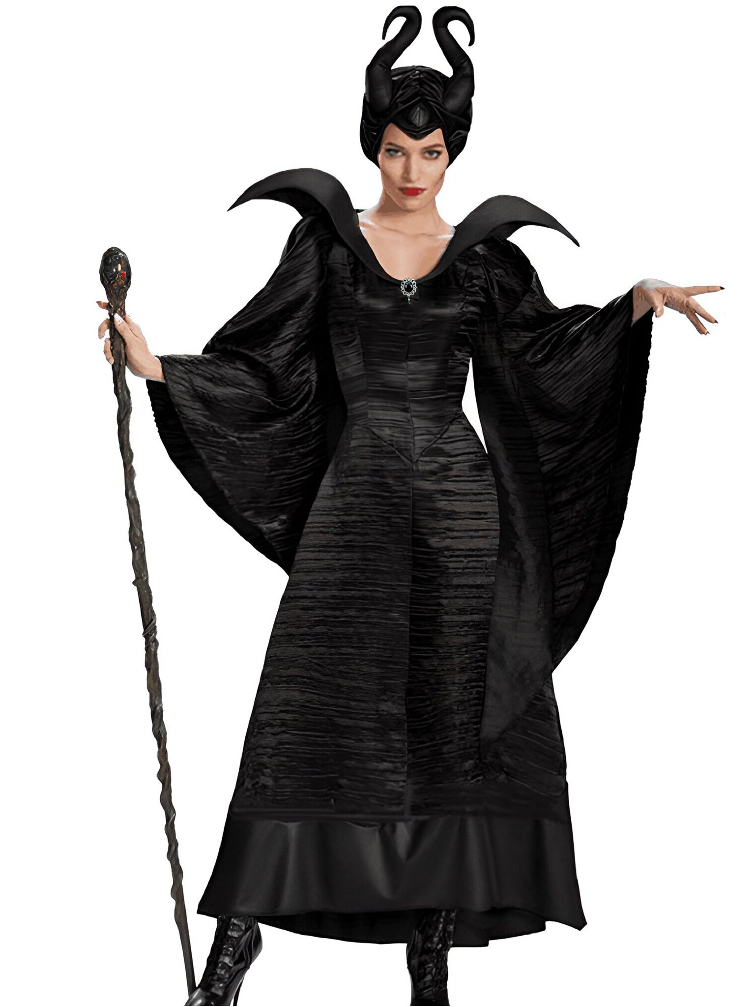 Карнавальный костюм "Малефисента" - идеальный выбор для взрослых женщин, желающих создать загадочный и элегантный образ на хэллоуине, корпоративе или тематической вечеринке. Изготовленный из полиэстера, он обеспечивает комфорт и свободу движений. Костюм включает в себя стильное черное платье и рога, которые точно передают образ зловещей Малефисенты из фильма "Спящая красавица". Очаруйте всех своим присутствием и станьте настоящей королевой темной магии на вечере в этом потрясающем костюме.