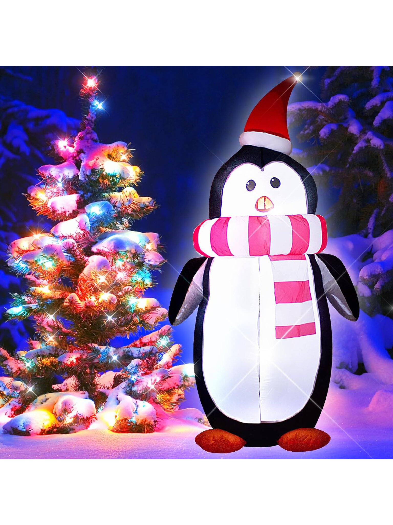 Создайте незабываемую атмосферу праздника с надувным пингвином высотой 120 см. Изготовленный из качественного полиэстера и пластика, этот очаровательный персонаж станет ярким акцентом новогоднего декора. Немецкое качество гарантирует долговечность и надежность. Пингвин в шапке и шарфе идеально подойдет для тематических оформления с животными и птицами. Легкость установки и хранения делают его отличным выбором для любого дома.